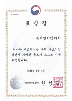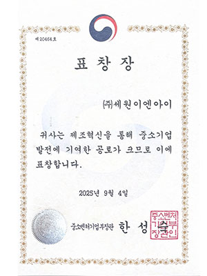 세원이엔아이 제조혁신부문 '중소벤처기업부 장관표창' (2025)